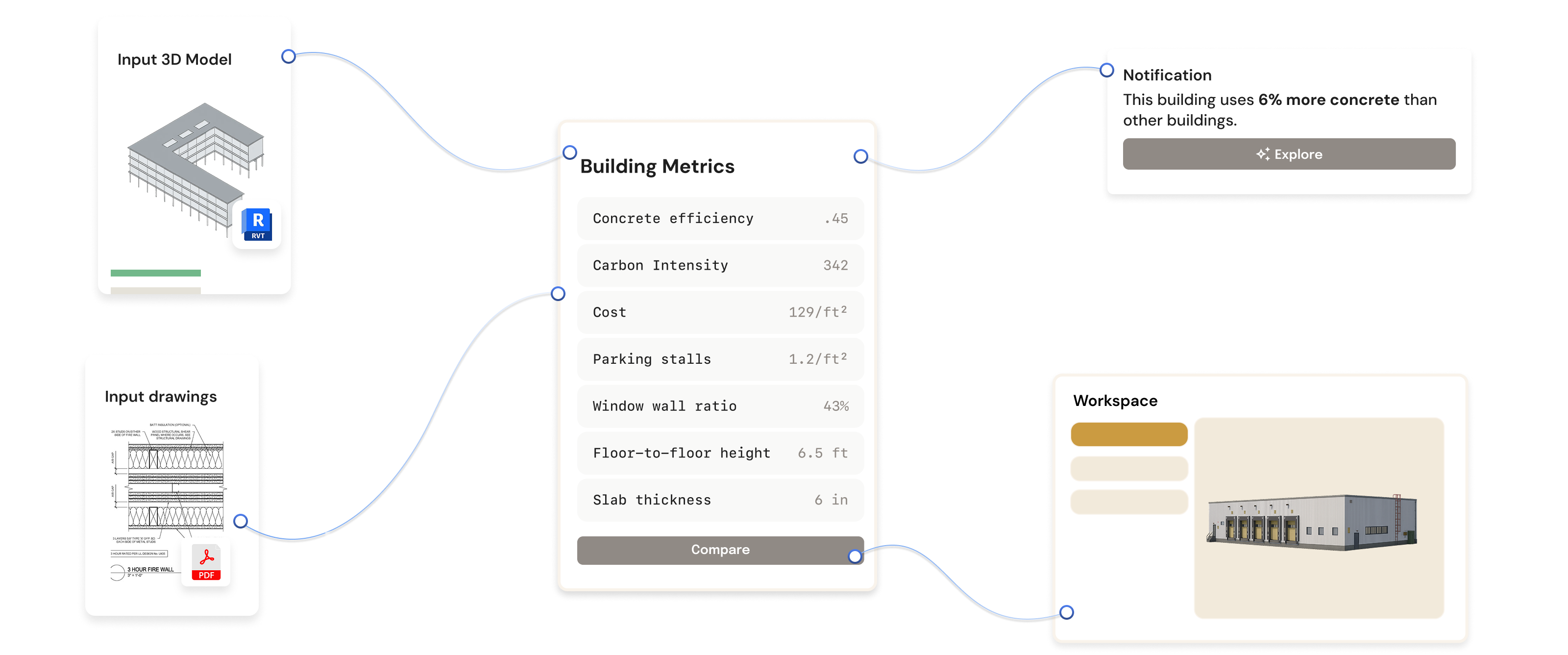 AI-powered takeoffs give you live and accurate materials data, so you can quickly understand the cost and carbon impact of your design.